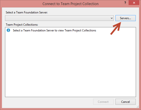 Figure 2 Standard ‘Connect to Team Project Collection’ window from Visual Studio