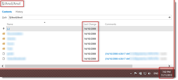 After the migration started, the dummy project showed different ‘last modified’ dates, which corresponded to the first check in date of the migrated Anvil project: